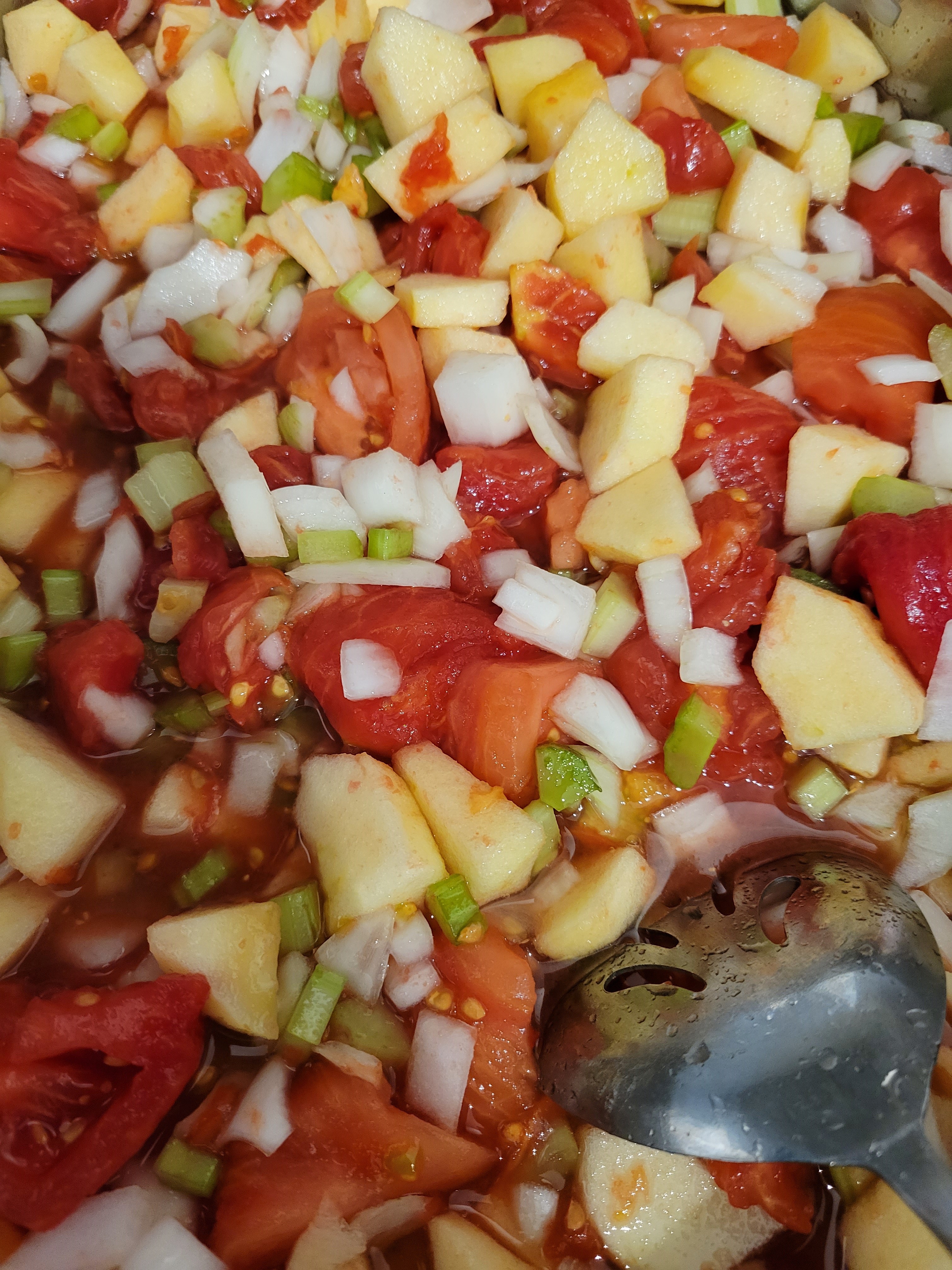 Thanks to the generosity of friends, I received enough ripe tomatoes for a batch of my mother’s chili sauce.